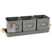 To make life simple, these pots are just the right size to hold supermarket herbs. The pots sit snugly in their tray, which features carrying handles in natural leather. Pre-printed with the names of three popular herbs, the pots’ handy ticket holders let you personalise them to suit your own tastes – coriander, tarragon, rosemary? Use them for the herbs you need, to suit your own cooking style.