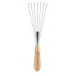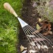 This hand rake is perfectly sized to fit between plants and under bushes to collect leaves and debris. The springy tines are curled up at the ends so that they don't damage emerging new shoots and gather, rather than stab the leaves, which means you can spend more time raking and less time picking leaves off the rake.