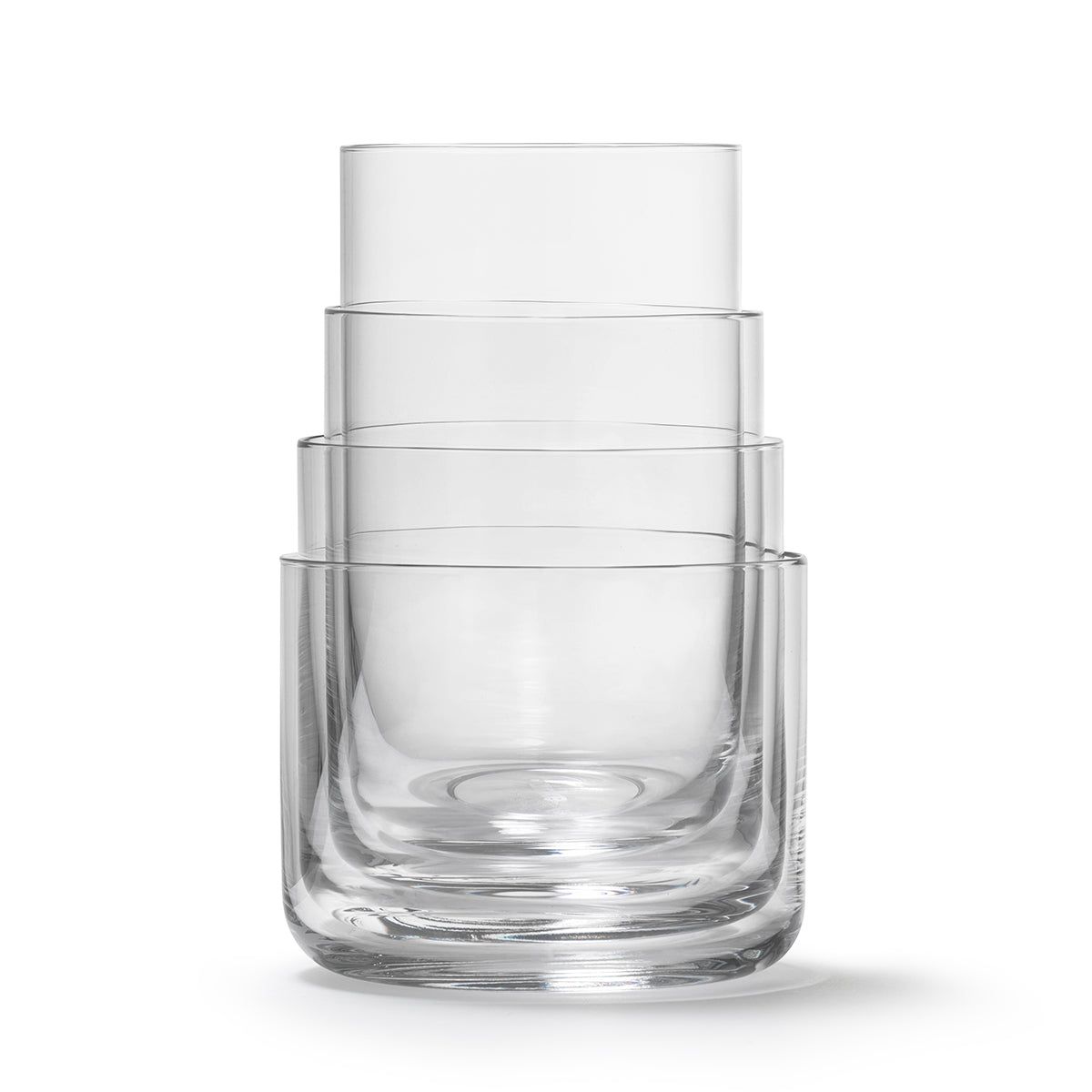 - Four shapes, one size - a glassware set designed to be nested, instead of stacked.