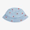Denim bucket hat with heart embroidery.
