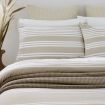 A sophisticated choice for a classic bedroom this neutral coloured design features white horizontal stripes on a sand background with a sand percale sheet backing.