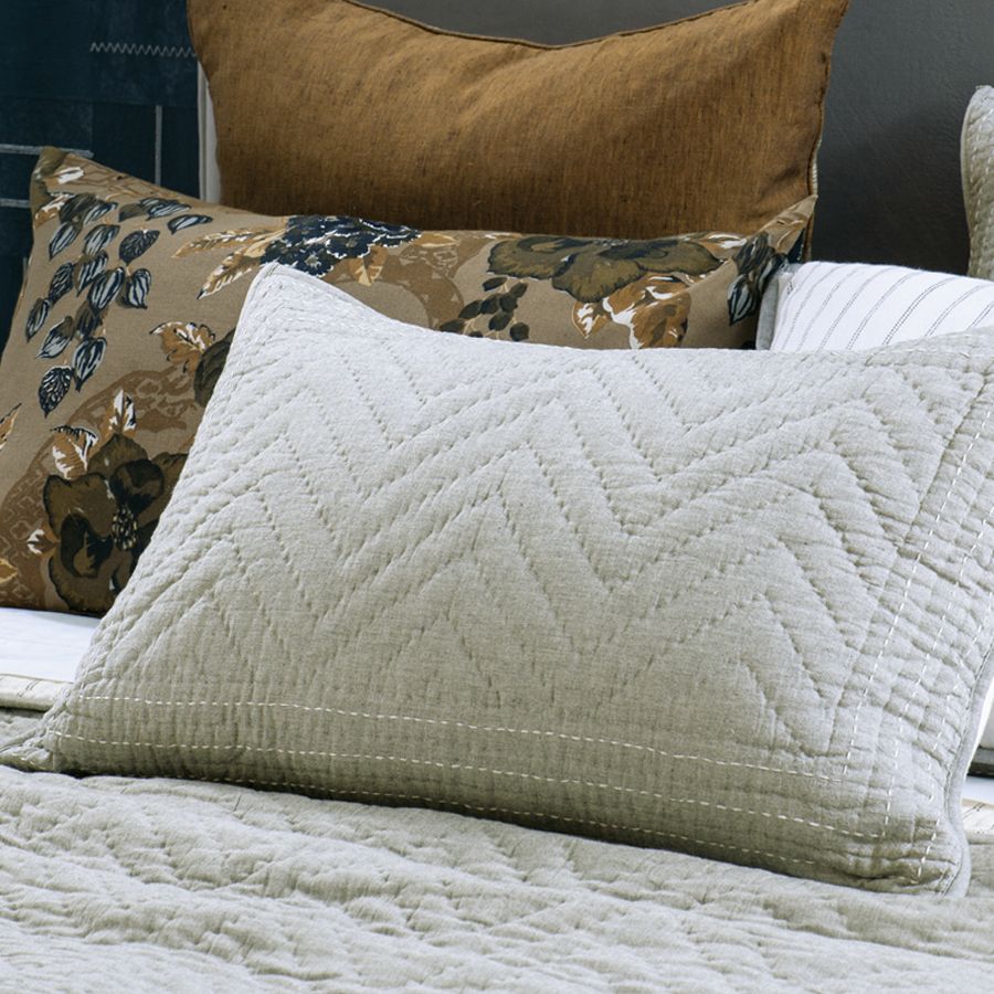 Meandering through the splendour of nature, a pathway of herringbone stepping stones paves the way to the Japanese tea house, paying homage to these 100% cotton hand quilted pillowshams. Handcrafted in a calming grey hue with a textured cotton stripe reverse and quilted cording detail, these versatile pillowshams are adaptable to a range of bed settings.