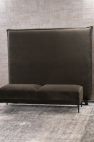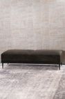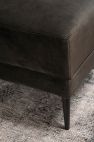 An elegant and sleek double cushion ottoman, upholstered in a deluxe walnut velvet and finished with black metal legs.