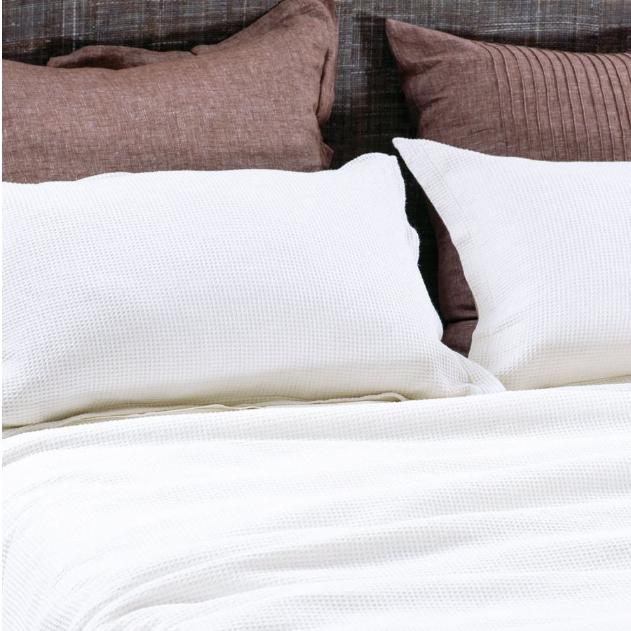 Reflecting organic textures found in nature, this woven matelasse duvet cover embodies simplistic style with its waffle weave in a white cotton. The perfect duvet for an effortless and uncomplicated look.