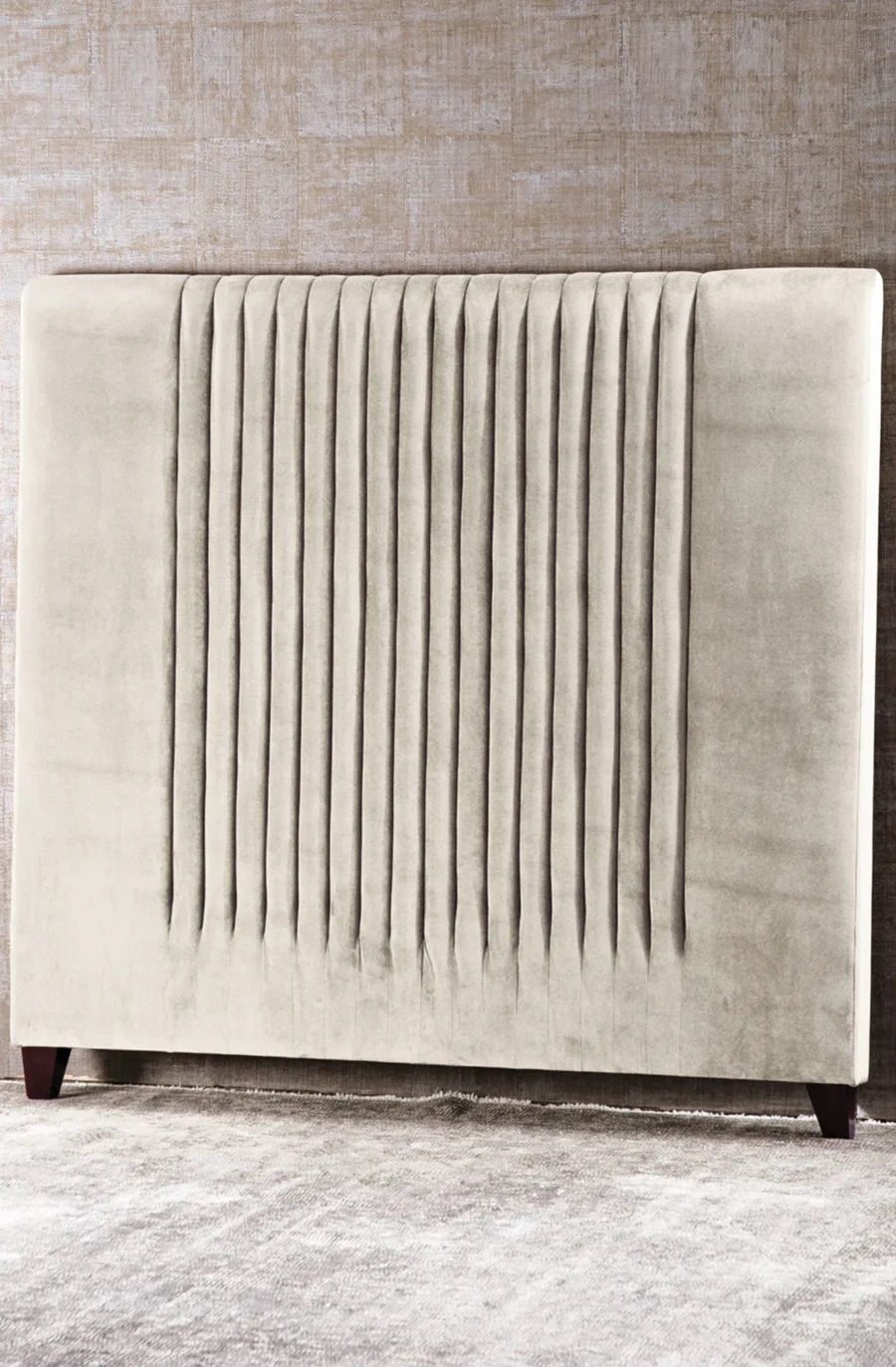 Upholstered in an opulent velvet, our luxurious Vernara headboard is a contemporary addition to any bed setting with its elegant vertical quilting detail and generous height. This headboard works well with the Renzo ottoman.