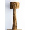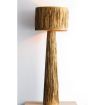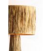 Generous lengths of antique gold coloured, dried raffia ribbon have been wrapped methodically in clean, vertical lines around both the cone-shaped base and classic shade structure of the unique Baleno lamp, creating a look that is multi tonal in hue while also showcasing a sculptural block of a single organic material.