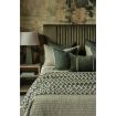 The Luchesi olive cushion bathes any bed setting in opulence with its moody colour, ribbon detailing and piped edges.
