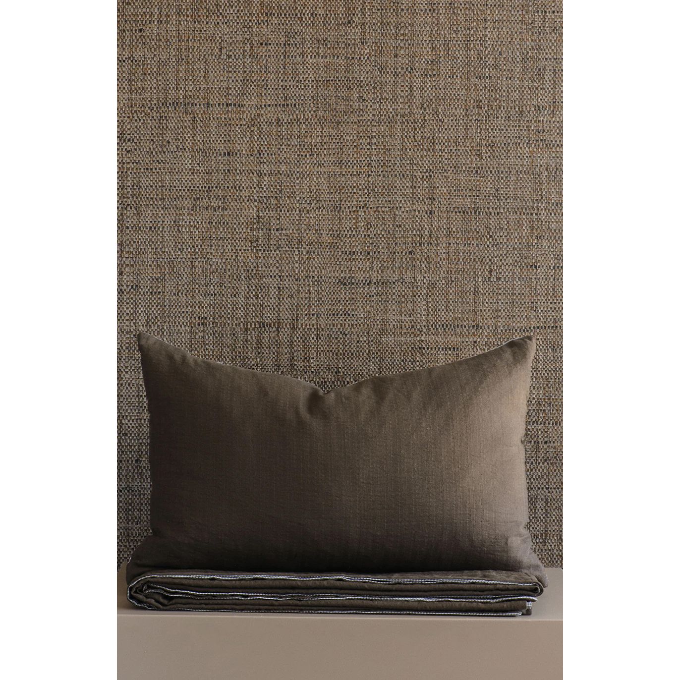 Discover Meiya, crafted from premium subtly textured dobby weave cocoa linen with a woven cotton houndstooth reverse. Meiya's pared-back elegance makes it a modern essential for the well-styled bed.