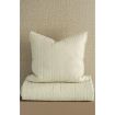 A natural-coloured dobby weave check balances the organic with the geometric atop the Piazza natural eurosham pair. Square shapes are hand-stitched and softened through the texture of linen. The story of checks continues on the reverse, with an ivory and natural small check fashioned from 100% cotton.