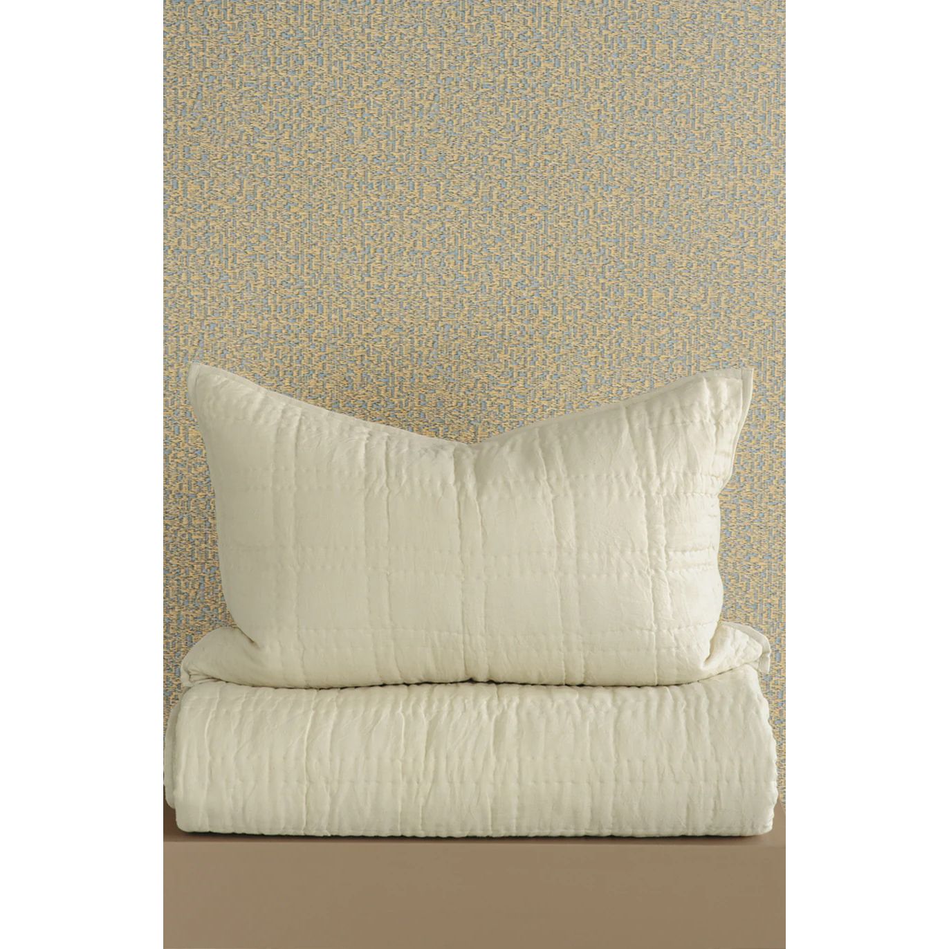 A natural-coloured dobby weave check balances the organic with the geometric atop the Piazza pillowsham pair. Square shapes are hand-stitched and softened through the texture of linen. The story of checks continues on the reverse, with an ivory and natural small check fashioned from 100% cotton.