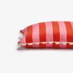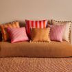 Inspired by the sweet tones of summer, this linen cushion pairs soft pink and orange in a retro stripe. Playful yet versatile, it works beautifully with stripes, florals and solids.