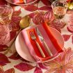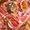 Retro stripes in sorbet pink and orange add a playful twist to summer or everyday table settings.