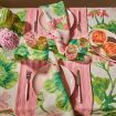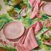 Wild and painterly, this linen tablecloth bursts with overgrown geranium flowers in sun-warmed pink and green. A garden-inspired design that turns every meal into a celebration.
