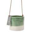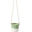 This hanging indoor planter is crafted in durable stoneware, and is fully waterproof. It features a stylish and strong leather hanging cord.