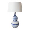 The Laguna Lamp is an elegant silhouette, the curved gourd-inspired shape adds a chic sculptural element and the acrylic base gives a distinctive twist. It comes in a White Ceramic with an all-over hand painted Navy brush stroke and finished with a White cotton shade.