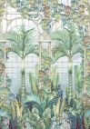 A charming three-panel mural featuring the intricate architecture of a tropical house and the rich variety of botanicals housed within, set against an ombre background.