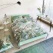 In blissful tones of celadon and jade, this serene bedding design creates a romantic mood of watercoloured leaves, layered amidst magnolia flower blossoms. Digitally printed onto crisp cotton percale for a touch pure luxury. Pillowcases are beautifully detailed with a grey trim. This stunning floral bed linen design reverses to a watercolour textured print.