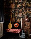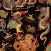 This stunning Asian style wallpaper is depicting several hand coloured dragons and monsters inspired by the famous Tibetan murals and tapestries.