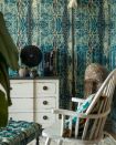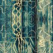 A vintage tribal design that explores different shades of blue crossed with white lines, inspired by the culture of a native group in Cameroon called Bamileke. An authentic Central African pattern created after an original handmade patchwork fabric. The design is printed over 3 panels each 52cm x 3.0m.