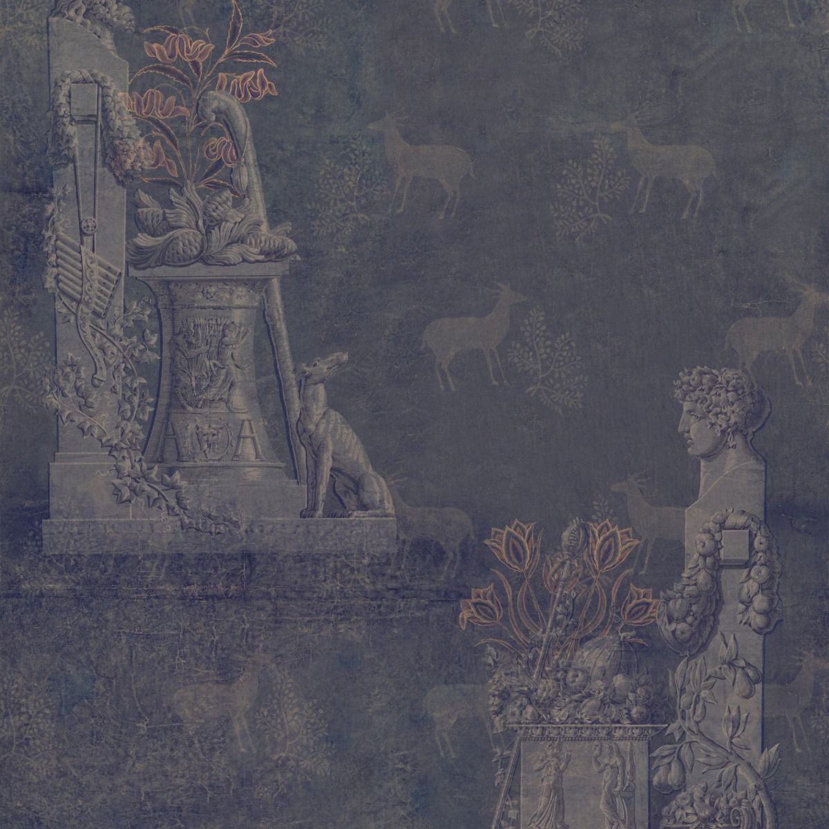 A soft toned wallpaper with delicate sculptural elements. Featuring Greek inspiration mythological sculptures and symbols, Sculptural is an antique washed style wallpaper remembering beautiful antique walls of the old castles.