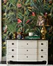 A stylish mix of beautiful illustrated parrots and tropical plants in this wallpaper design inspired by the beautiful flora and fauna of Brasil.