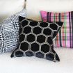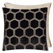 This stylish cut velvet square cushion in noir features a bold scale hexagonal geometric with a unique patterned effect in the ground.