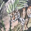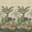 A stunning statement wallpaper by John Derian featuring an exotic scene of botanical palm trees with a roaming elephant and tiger. Can be combined with Scene 2 to breath taking effect.