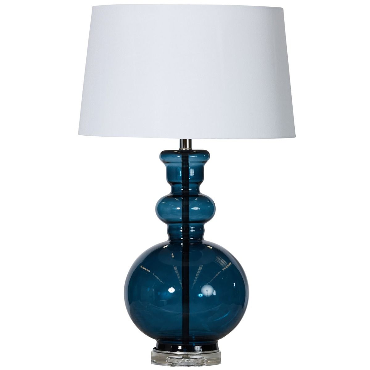 The Calypso Lamp features a curved base of hand blown glass perfect for an eclectic interior look.