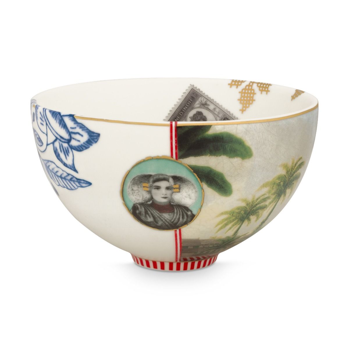 Perfect for breakfast or to use as a bowl for small appetites. The bowl has a white background at the left side and a nature design on the right side. On top of the white left side, you will find several blue details and design which define the story behind the Heritage collection. At the right side various palmtrees and beautiful nature can be seen. This designer piece will make sure your table looks perfectly styled whenever, wherever.