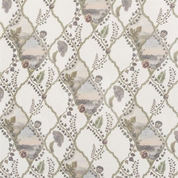 A unique trellis inspired design detailed by beautiful ivy branches and violet flowers with serene landscapes in the ground. This beautiful design is digitally printed onto a fine wide-width sheer to complete your Christian Lacroix interior scheme.