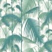 Cole And Son Fabric Palm Jungle Linen Union Teal & Viridian on Chalk
