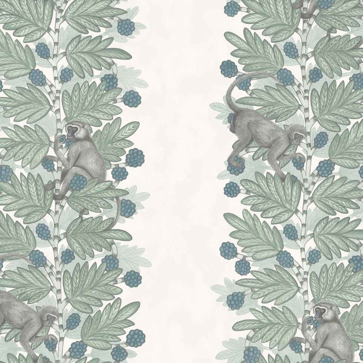 The Acacia tree is an enduring sight in Africa with its bright yellow ‘fluff-ball flowers, and holds warm memories for Ardmore founder Fee Halsted. Having always had monkeys around her as a child, these humorous animals full of wit, pranks and intelligence have created a soft spot in her heart, and in turn have provided the inspiration for this striking new ‘conversational’ wallpaper. Designed to create a wide striped effect, this paper is subtle yet will add drama, especially with the addition of our two charming pranksters.