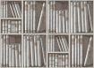An avid collector of literature volumes on the applied arts, Fornasetti used books as a recurring theme which can be found throughout the Atelier’s archive. This library Trompe l’oeil scene, abundant in leather-bound books, is adapted from a 1953 screen.