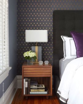 Hicks' Hexagon's sophisticated small-scale geometric repeat has become an instantly recognisable design classic. It’s honeycomb-like print is emphasized in both delicate colour palettes of Soot & Bronze on Slate Grey, Soot & Bronze on Linen, Ink & White on Heath Grey, and Hyacinth & White on Cool Parchment, as well as dramatic hues and burnished metallics of Charcoal & Gilver on Stone, Teal & Bronze on Soot and Black & Gold on Soft Olive.