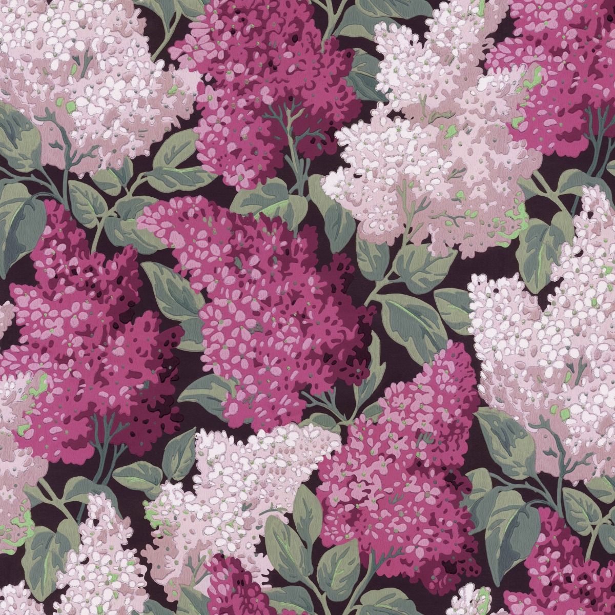 The Cole & Son design studio have cultivated this classic floral into a large-scale, arresting design in a punchy Magenta & Blush on smoky Charcoal retaining the texture of blooms abundant in foliage.