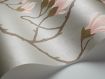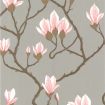 A large-scale floral design, Magnolia features an Oriental interpretation of flowers from the USA's southern states in pastel shades of Alabaster Pink on Silver, Rose on Sky Blue, Rose on Blush.