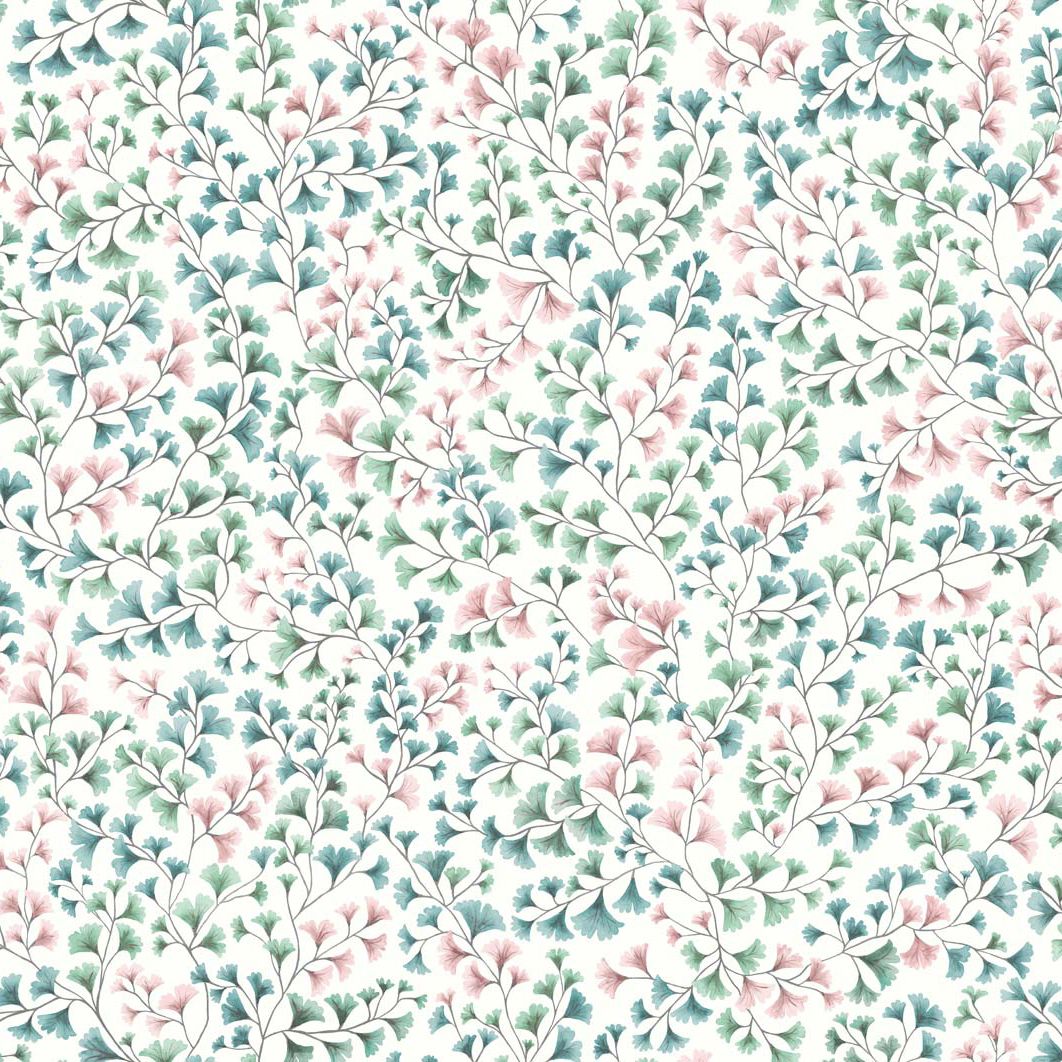 The subdued watercoloured hues of Maidenhair transform this fossil form into a charming semi-plain print with palettes of Petrol, Blush & Mint, Olive, China Blue, and Mulberry, Ink & Alabaster reflecting stippled sunlight as it shines through the Gingko’s delicate leaves.