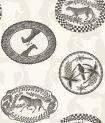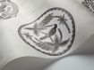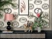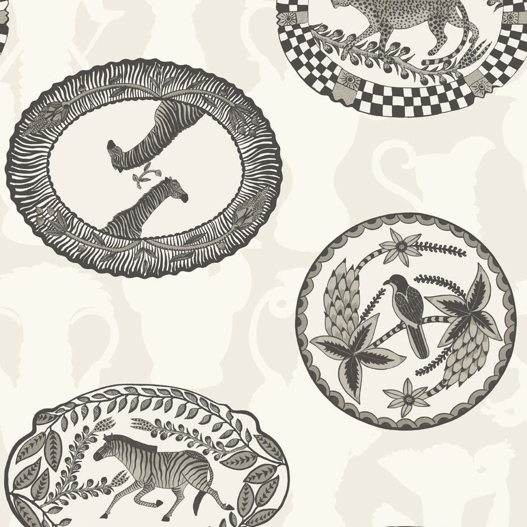 One of the more classical designs within the collection, Matrinah, named after Ardmore designer Matrinah Xaba, reveals an arrangement of ornamental platters and dishes, all intricately patterned with birds and animals and edged with decorative borders and pie crust scallops. These in turn are placed on chalky grounds of olive, taupe, ivory, yellow ochre and pink featuring the softly silhouetted shapes of the vases from the Khulu Vases design. Presented in five striking colourways which include a subtle gilver on stone and soft gold on olive.