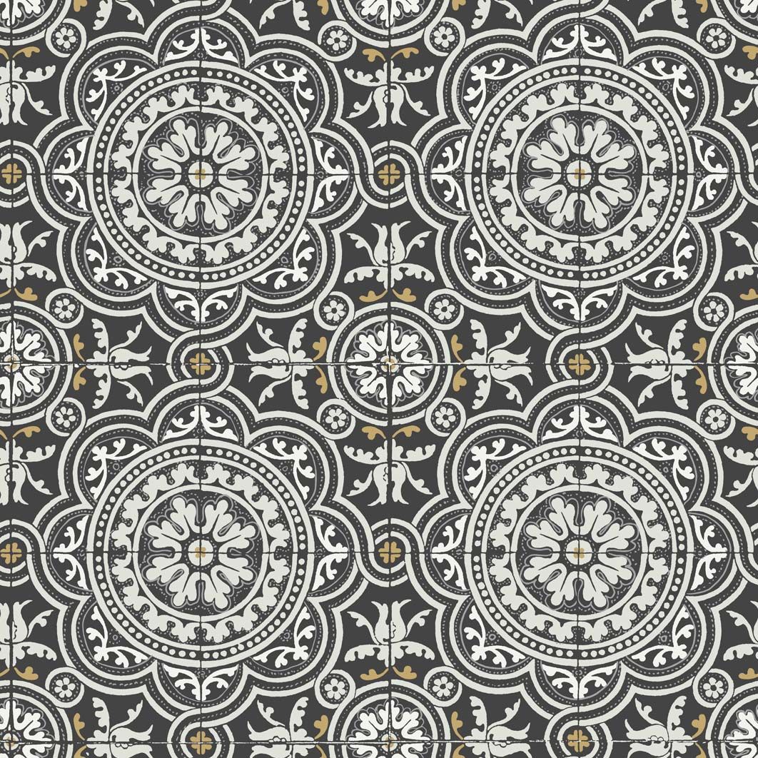 Composed of a host of beautiful curved, swirling lines, Piccadilly is a classic tile print found throughout Seville, from the Alcazar’s tiled bench nooks, to restaurant walls and elaborate ceramic floors. Piccadilly’s traditional print is made contemporary in striking shades of Grey & Metallic Gold on Black.