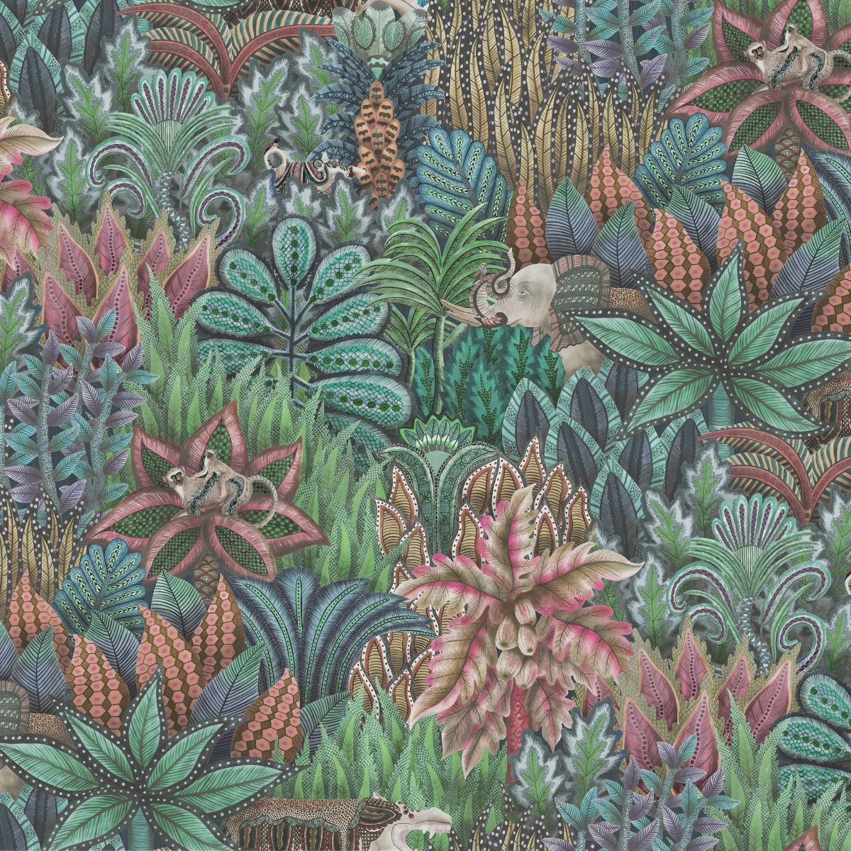 Singita, which means ‘Place of Miracles’ is truly just that! This rich and fabulously patterned forest design has been painstakingly and charmingly hand painted using the decorative plant motifs and foliage which adorn the painted dishes and bowls created by Ardmore artists over the years. This rich tapestry-like paper with its glimpses of artist, Alex Sibande’s enigmatic animal travellers strolling through the undergrowth, will create a luxurious backdrop to any interior.