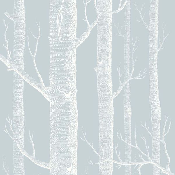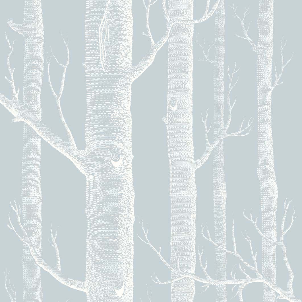 A true Cole & Son classic, featuring a forest of silver birch trees, Woods is presented here in three brand new colourings of aged pink and gilver, blue and white and eau de nil and gold.