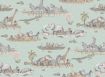 Zambezi features a flotilla of boats, originally sculpted by Sotho artist Benet Zondo, captained by an array of animals all floating gently down the Zambezi river in Zimbabwe. Inspired by Operation Noah, a mission led by people in boats to save drowning animals when the Zambezi flooded in the 1960s, this delightful wallpaper will be loved by children and adults alike. Softly coloured zebras monkeys, elephants and hyenas all feature as do the occasional crocodile and haughty flamingo. The design is offered in two colourways of soft water coloured pastel tones and a calm yet sophisticated neutral and is printed with a striking 70cm wide repeat on a half drop.