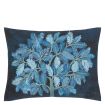 This striking cushion features a stunning stylised tree intricately embroidered onto a cotton/linen digitally printed ground. This decorative interior cushion reverses to an all-over layered leaf pattern digitally printed in azure blue.