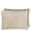 Featuring Cartouche with small scale leaves jacquard woven in a swirling multi directional pattern, reversing to Carylon in driftwood and finished with an elegant trim on two sides with Chaviere in parchment.