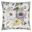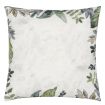 Beautifully painted dahlias, bordered with hosta leaves are digitally printed onto a cotton linen blend ground with delicate embroidered highlights. This sophisticated floral cushion reverses to a painterly texture with leafy border in soft zinc tones.