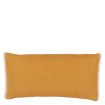 A dynamic horizontal striped weave cushion, created with an ochre space dyed chenille yarn combined with a twisted boucle yarn and a recycled cotton ground. Finished with an ecru cotton brushed trim on both sides, this contemporary rectangular cushion is paired with Brera Lino in burnt ochre.