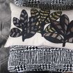 This stylish decorative cushion features graphic, bold leaf motifs in a dynamic scale, embroidered onto a natural coloured cotton linen blend ground.