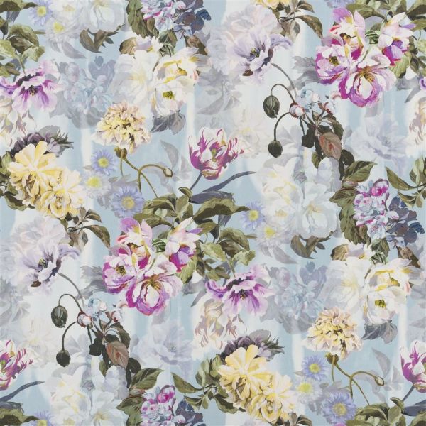 Traditional elements combine in this incredible and exquisite display of large scale floral blooms. Multi-coloured and intense, the florals float above a shaded and printed ground. Available inthree dramatic colourways. Digitally printed on a lightweight and softly tumbled linen for wonderfully evocative floral curtains, blinds and cushions.