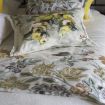 In dramatic mirrored damask form, this stunning embroidery features large scale floral motifs, elegantly intertwined with leaves and foliage with a variety of stitch techniques creating intricate detail and dimension. This contemporary decorative embroidery is available in two colourways - one with vibrant threads on natural linen and a sophisticated neutral on crisp white linen.