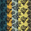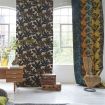 The epitome of glamour - this luxurious statement striped satin fabric woven with silk, combines wide bands of colour with a graphic floral embroidery in black with an almost raised appearance. In one statement colourway suitable for curtains, blinds and cushions.